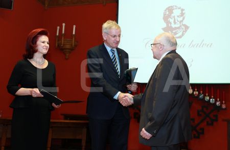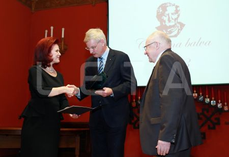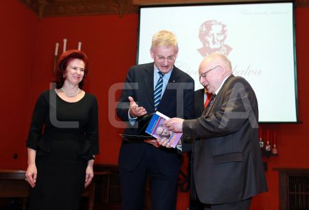 Akadēmiķis Jānis Stradiņš (no kreisās) un Cicerona balvas projekta ...
