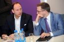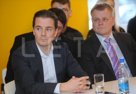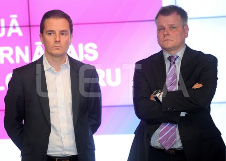 "Tele2" valdes priekšsēdētājs Valdis Vancovičs (no kreisās) un ...