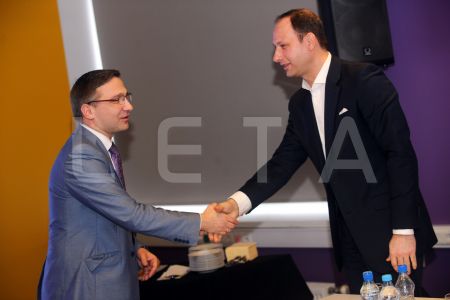"Tele2" valdes priekšsēdētājs Valdis Vancovičs (no kreisās), "Tele2" ...