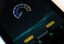 Planšetdatora ekrāns ar interneta ātruma mērījuma aplikāciju mobilo ...