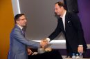 "Tele2" valdes priekšsēdētājs Valdis Vancovičs (no kreisās) un "Nokia ...