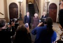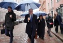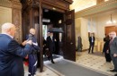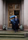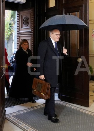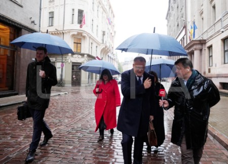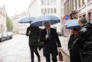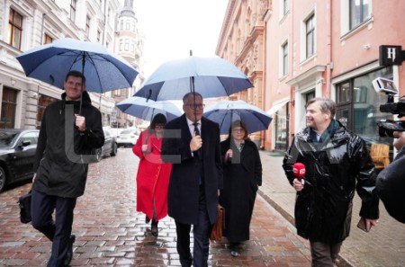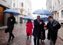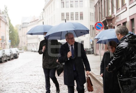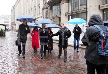 Finanšu ministrs Arvils Ašeradens (centrā) no Finanšu ministrijas uz ...