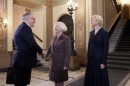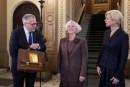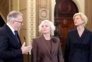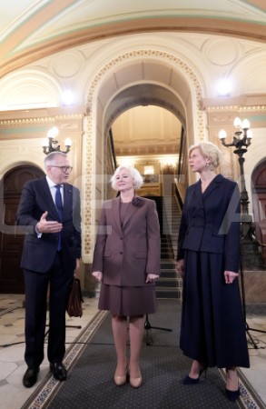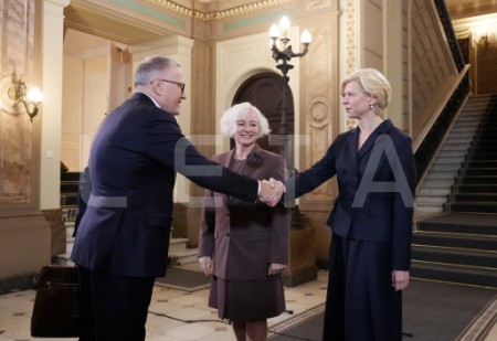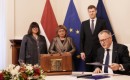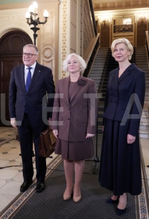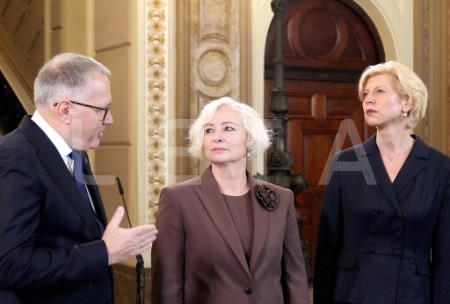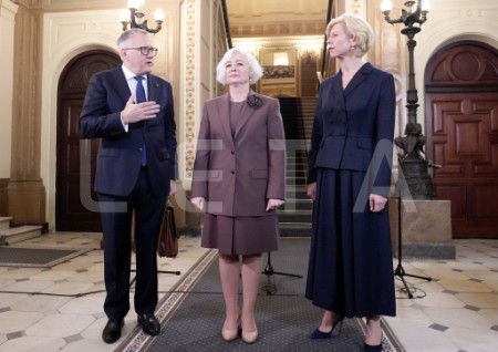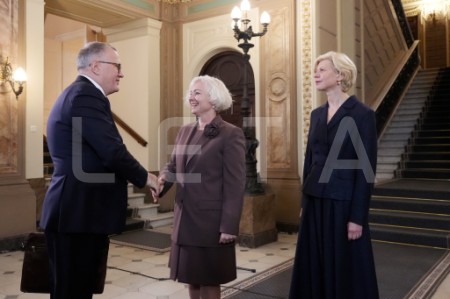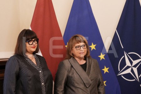 Saeimas priekšsēdētāja Daiga Mieriņa (no kreisās) un Saeimas Budžeta ...