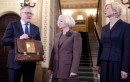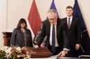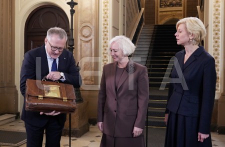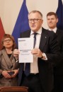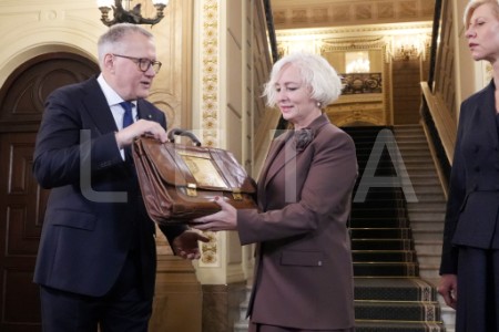 Finanšu ministrs Arvils Ašeradens iesniedz Saeimas priekšsēdētājai ...