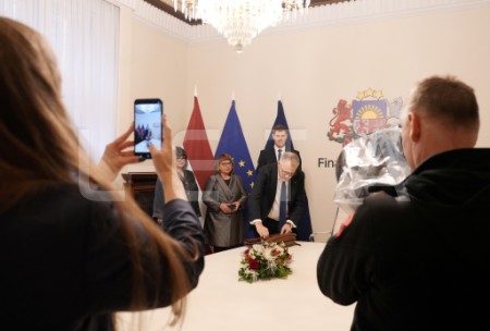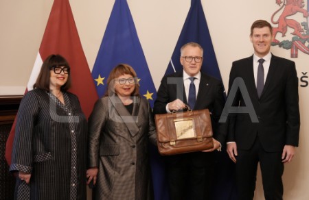 Finanšu ministrs Arvils Ašeradens un Finanšu ministrijas valsts ...