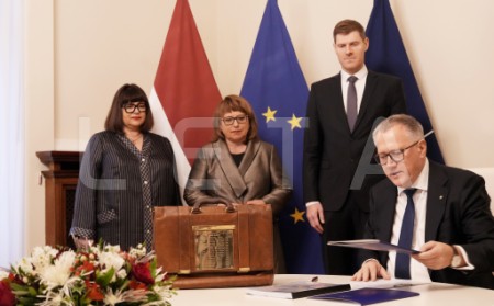 Saeimas priekšsēdētāja Daiga Mieriņa piedalās pasākumā Saeimā, kurā ...
