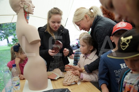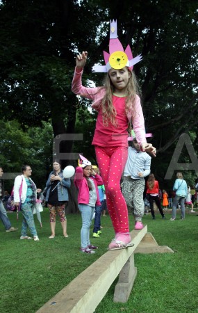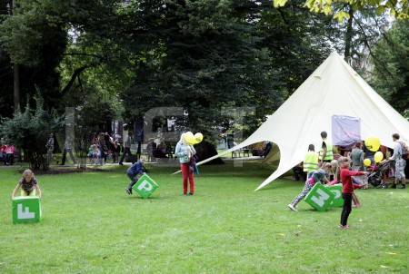 Bērni Zināšanu pagalmā Rīgas svētkos Vērmanes dārzā.