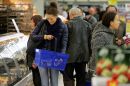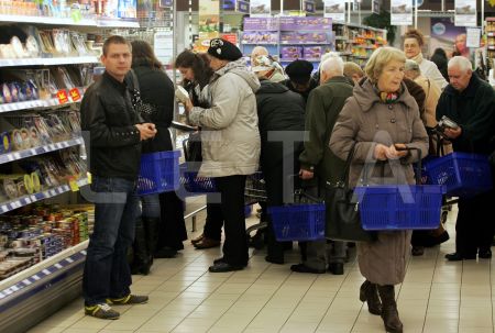 Cilvēki iepērkas lielveikalā "Maxima XXX".