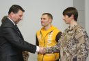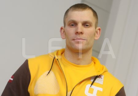 Biatlonists Andrejs Rastorgujevs piedalās svinīgajā pasākumā, kurā ...