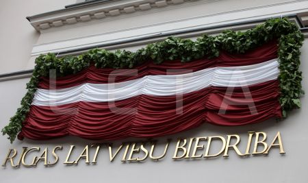 Svētku noformējums pie Latviešu biedrības nama, kurā notiek XXV ...