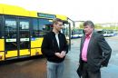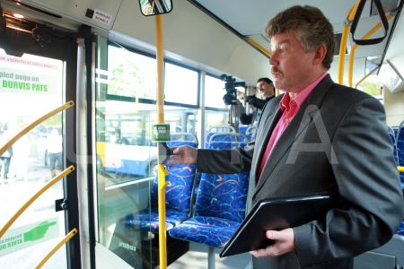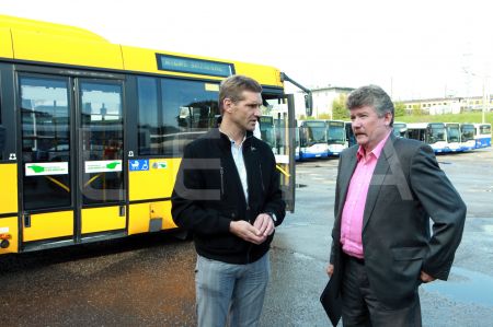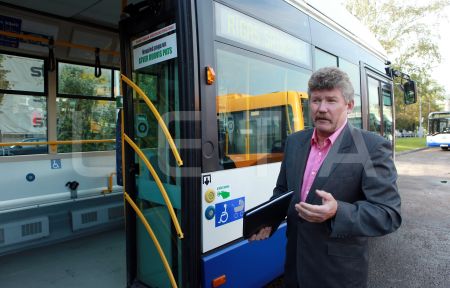 SIA "Rīgas satiksmes'' valdes priekšsēdētājs Leons Bemhens (no labās) ...