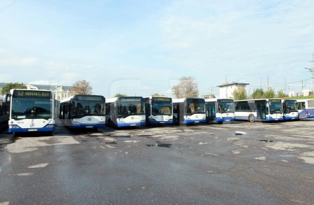 Autobusi Abrenes ielas galapunkta stāvlaukumā.