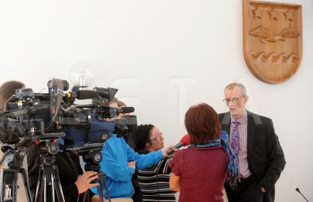 Jūrmalas domes priekšsēdētājs Gatis Truksnis atbild uz žurnālistu ...