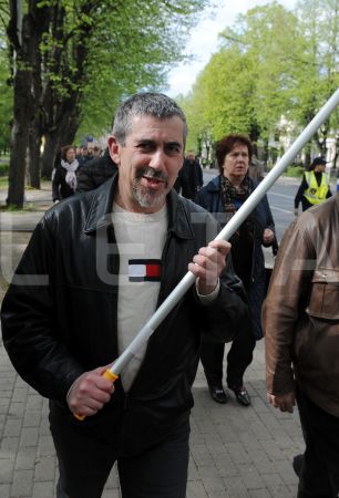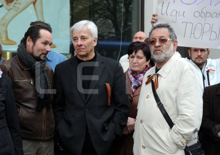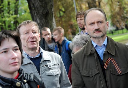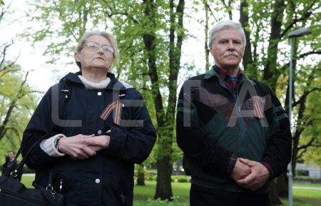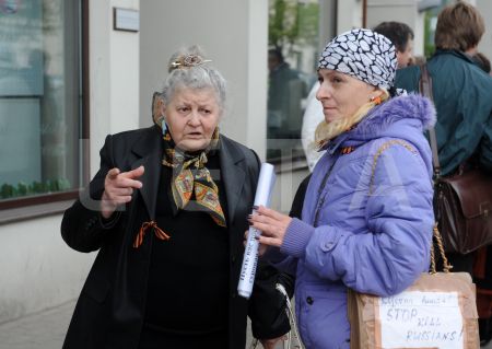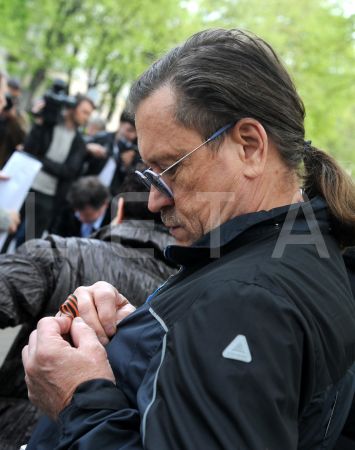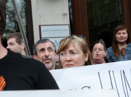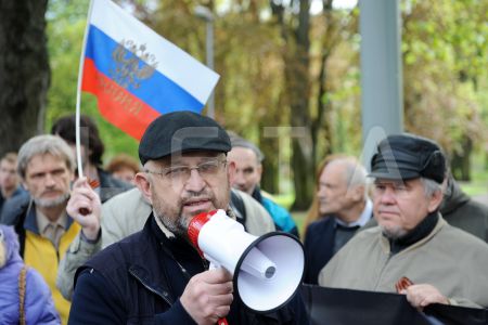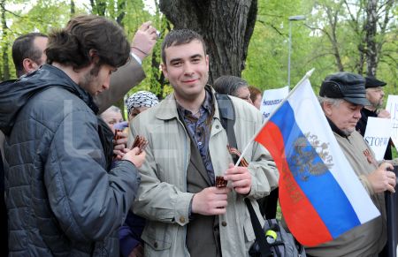 Latvijas Krievu savienības pārstāvis ar georga lentītēm mītiņa ...