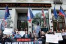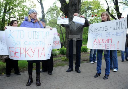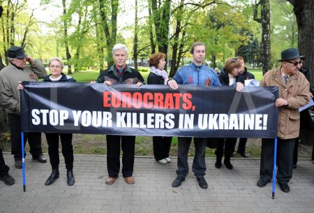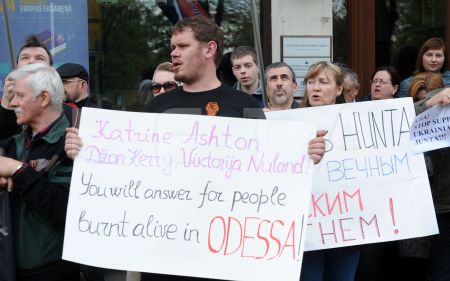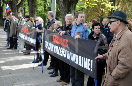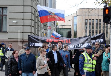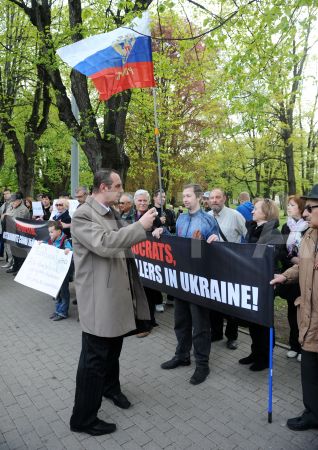 Latvijas Krievu savienības pārstāvji pēc mītiņa pie Ukrainas ...