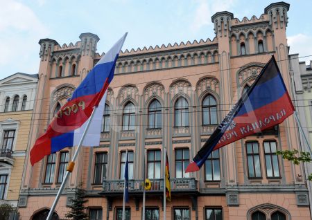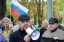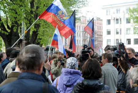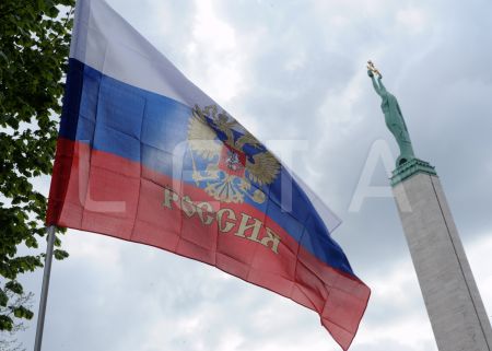 Krievijas karogs Latvijas Krievu savienības pārstāvju rīkotā mītiņa ...