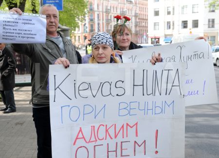 Latvijas Krievu savienības pārstāvji pulcējas mītiņā "pret politisko ...