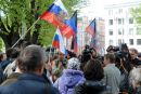 Krievijas karogi Latvijas Krievu savienības pārstāvju rīkotā mītiņa ...