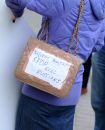 Latvijas Krievu savienības pārstāves somiņa ar uzrakstu mītiņa "pret ...