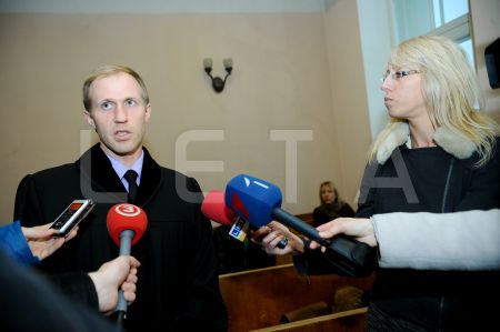 Prokurors Mārcis Viļums atbild uz žurnālistu jautājumiem pirms tiesas ...