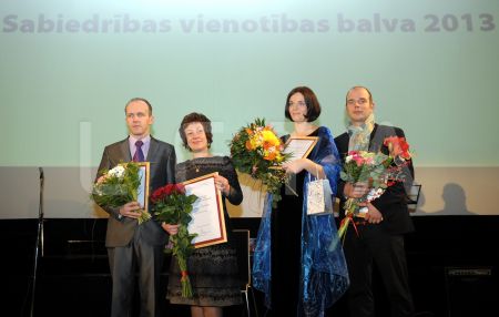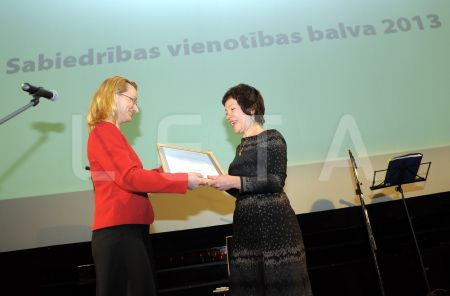 Kultūras ministre Dace Melbārde (no kreisās) pasniedz Sabiedrības ...