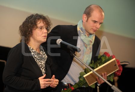 Režisore un aktrise Kristīne Klētniece-Sika saka runu pēc balvas "Par ...