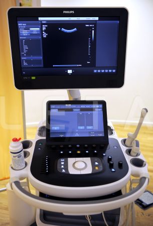 Modernā ultrasonogrāfijas iekārta, ko Bērnu klīniskās universitātes ...