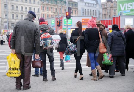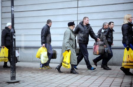 Cilvēki ar universālveikala "Stockmann" akcijas "Trakās dienas" ...
