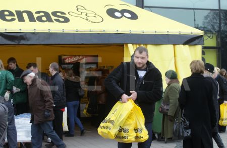 Vīrietis ar universālveikala "Stockmann" akcijas "Trakās dienas" ...