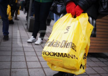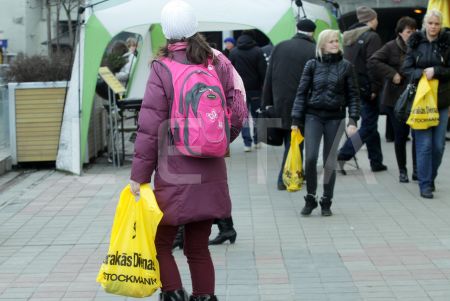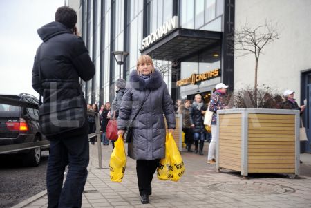 Sētniece ar universālveikala "Stockmann" akcijas "Trakās dienas" ...