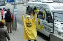 Akcijas "Trakās dienas" reklāmas cilvēks pie universālveikala ...