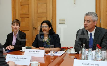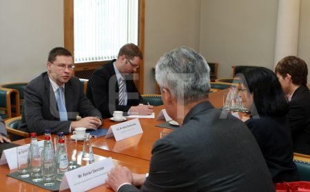 Ministru prezidents Valdis Dombrovskis (no kreisās) tiekas ar ...