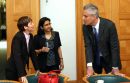 Ministru prezidents Valdis Dombrovskis (no kreisās), Ministru ...