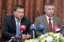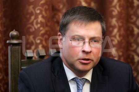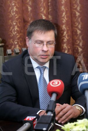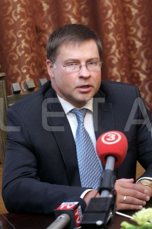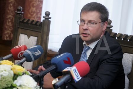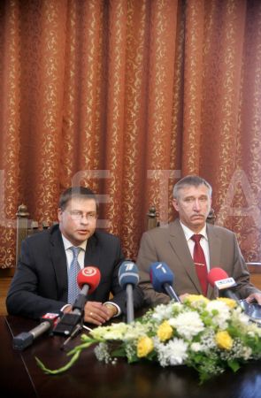 Ministru prezidents Valdis Dombrovskis (no kreisās) un ...