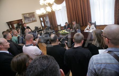 Ģenerālprokurors Ēriks Kalnmeiers preses konferences laikā pēc ...