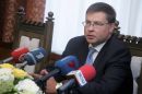 Ministru prezidents Valdis Dombrovskis preses konferences laikā pēc ...