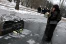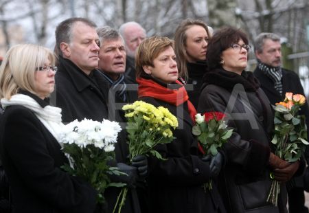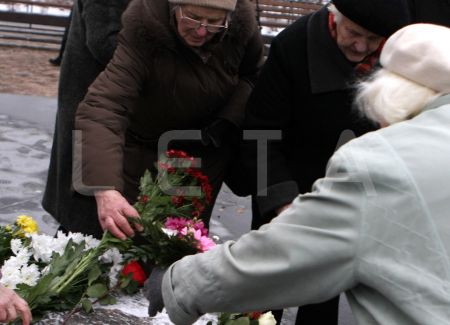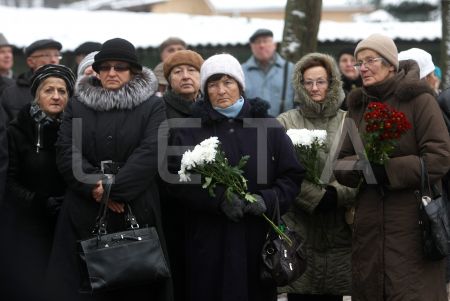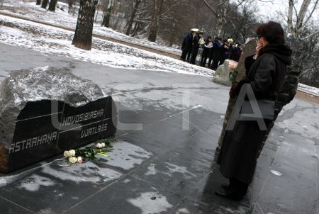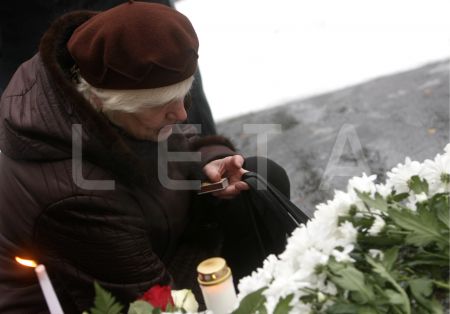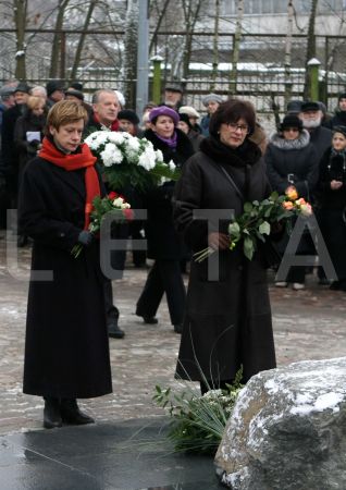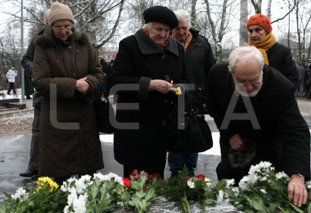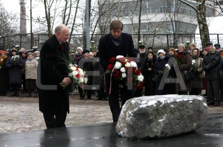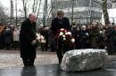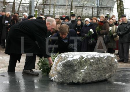 Cilvēki noliek ziedus pie Komunistiskā terora upuriem veltītā ...