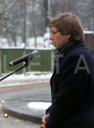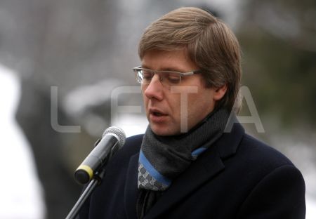 Rīgas domes priekšsēdētājs Nils Ušakovs uzrunā klātesošos ...