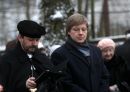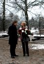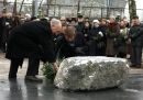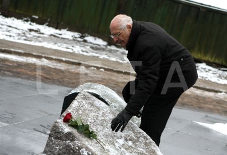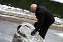 Vīrietis noliek ziedus pie Komunistiskā terora upuriem veltītā ...