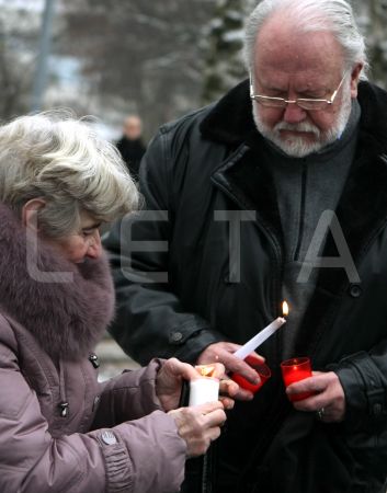 Cilvēki aizdedzina svecītes Komunistiskā terora upuriem veltītā ...