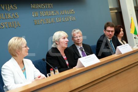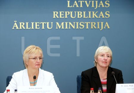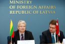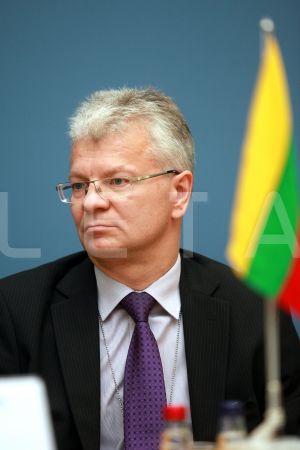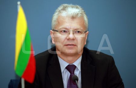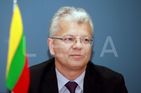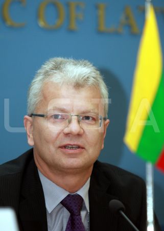 Lietuvas vēstnieks Latvijā Ričards Degutis (no kreisās) un Ārlietu ...
