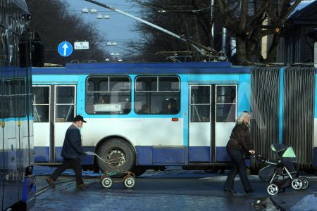 Tramvajs Uzvaras bulvārī.