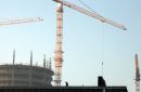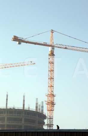 Skats uz ceļamkrāniem un augstceltņu kompleksu "Z-Towers"'.