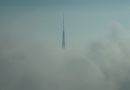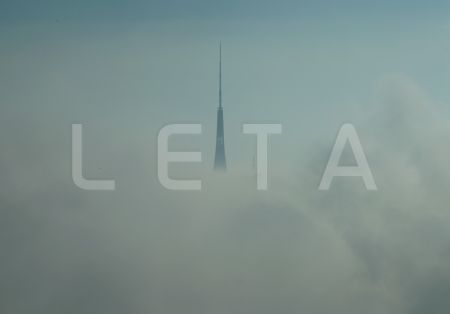 Televīzijas tornis miglā.