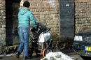 Cilvēki ar ratiņiem ved metāllūžņus Miera ielā.