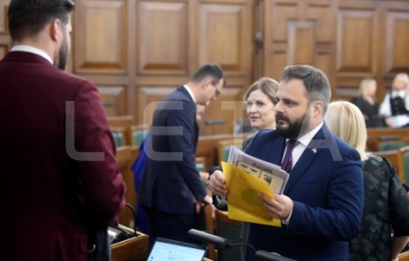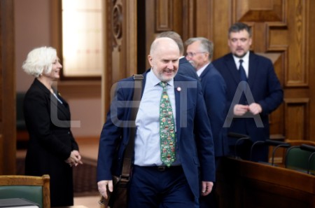 Saeimas deputāts Kaspars Briškens (centrā) piedalās Saeimas ārkārtas ...