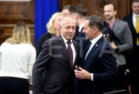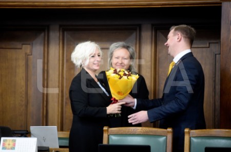 Saeimas sekretārs Edvards Smiltēns (no kreisās), Saeimas deputāte ...