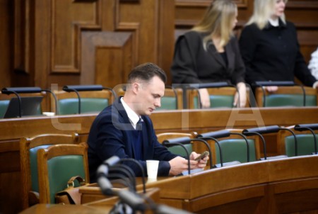 Saeimas deputāti Dāvis Mārtiņš Daugavietis piedalās Saeimas ārkārtas ...