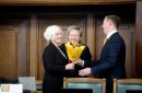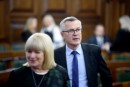 Saeimas priekšsēdētāja Daiga Mieriņa (no kreisās) un Saeimas deputāts ...