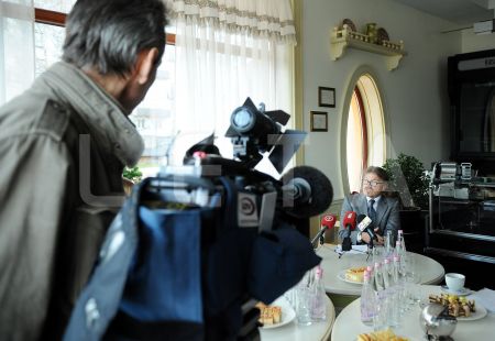 Uzņēmējs Gunārs Ķirsons atbild uz žurnālistu jautājumiem pirms preses ...